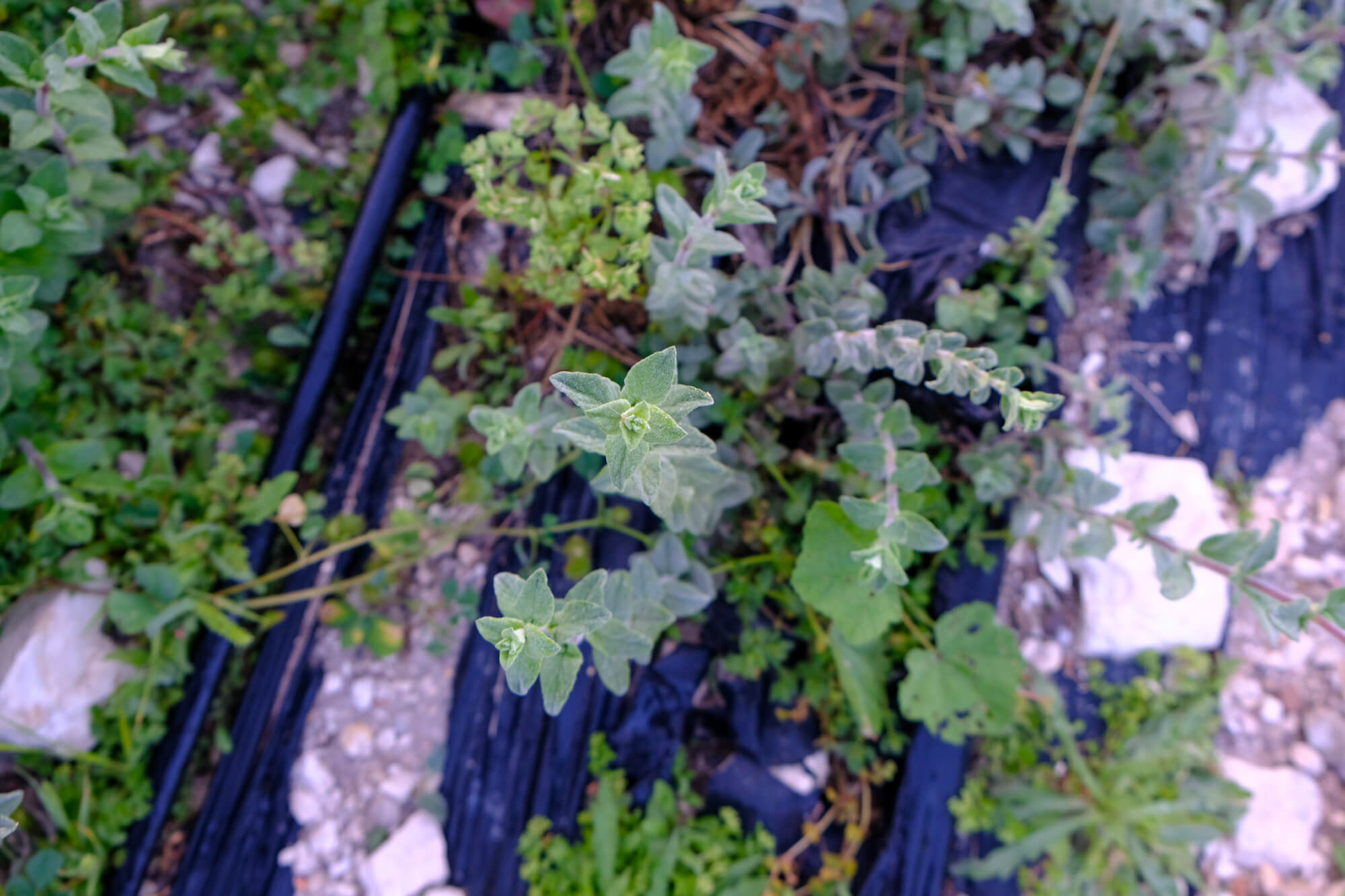 She points to the ground around her, where strips of black nylon have been laid out to retain soil moisture and prevent too many weeds from taking root.